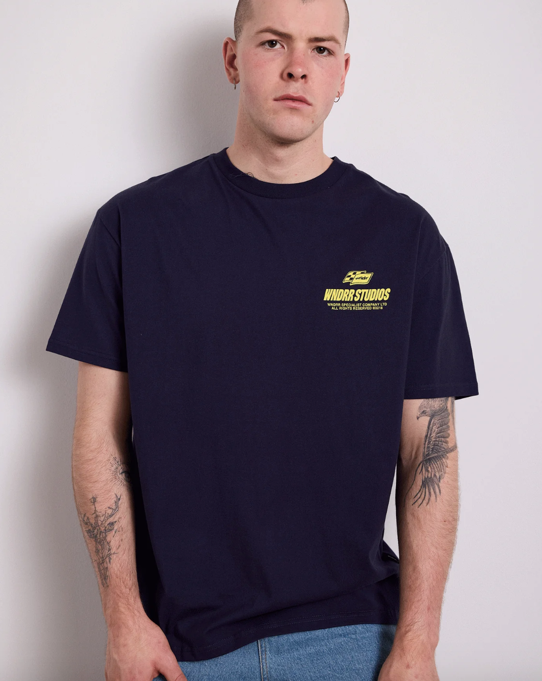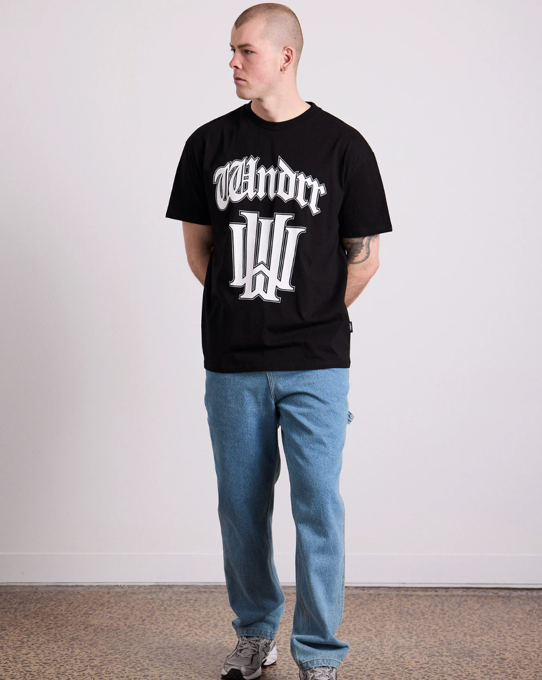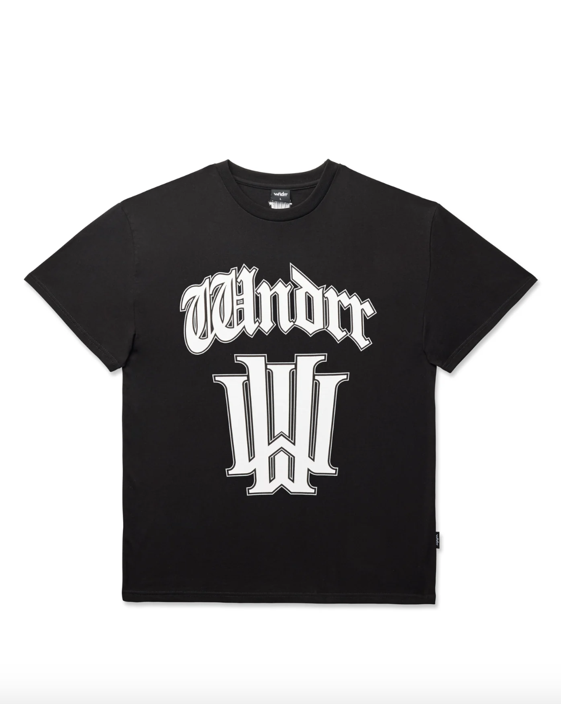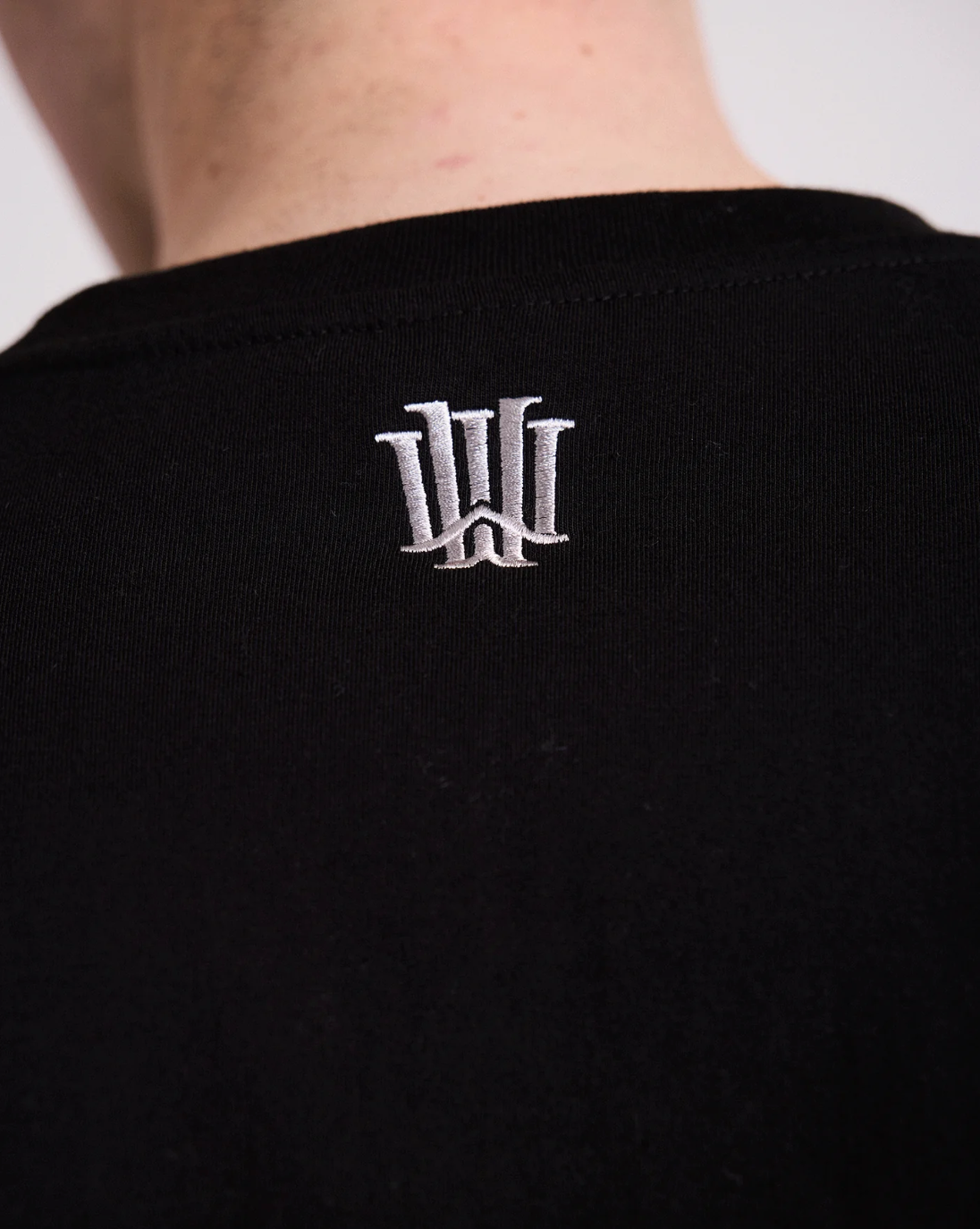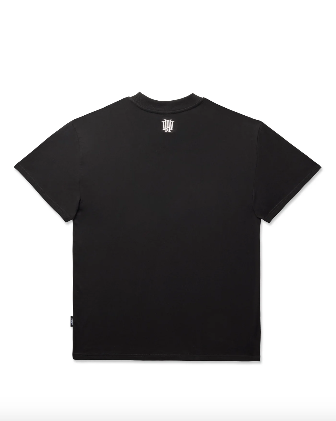 Relaxed fit; boxy silhouette 100% Cotton jersey 210gsm Black Ribbed crew neckline Short sleeves Printed branding to front Small embroidered branding to back neck