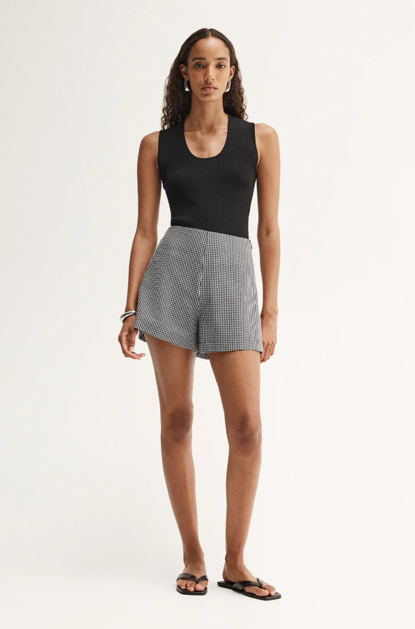 Made from a lightly textured gingham fabric, the Tessa Short is a playful interpretation of vintage design. With a wide leg silhouette, these shorts are perfect for low key weekend outfitting. Style with elevated basics or the matching Tessa Vest.