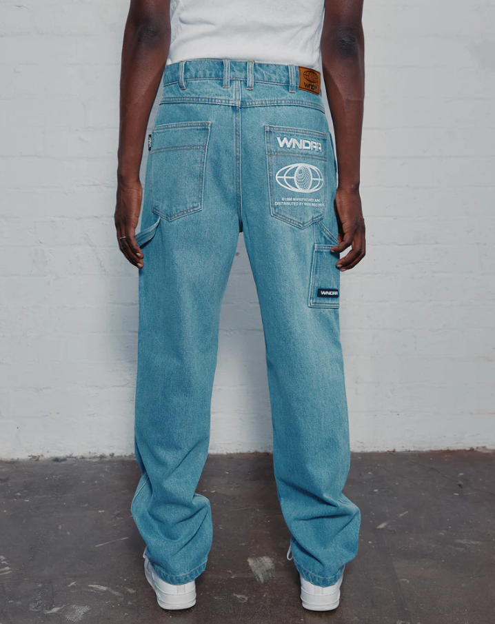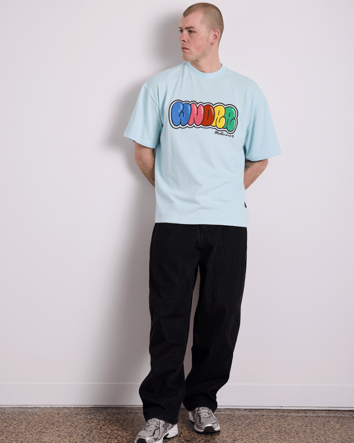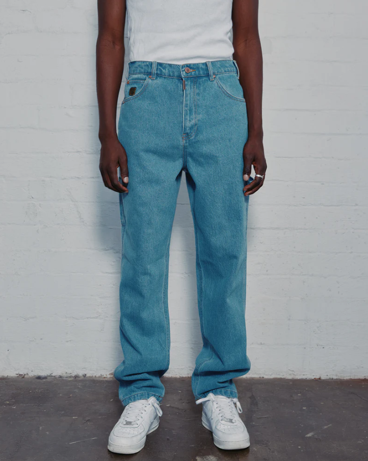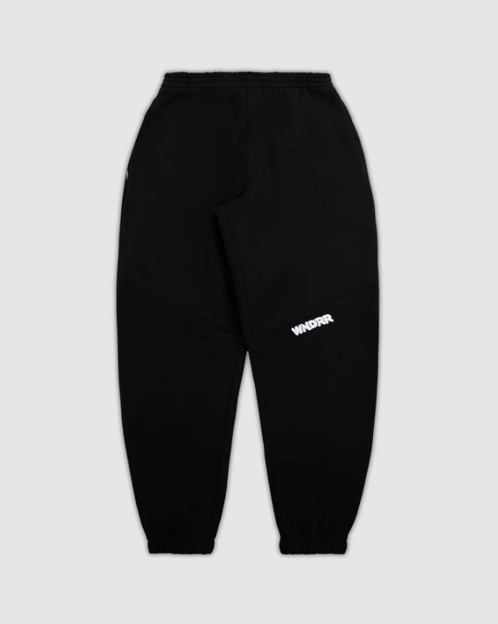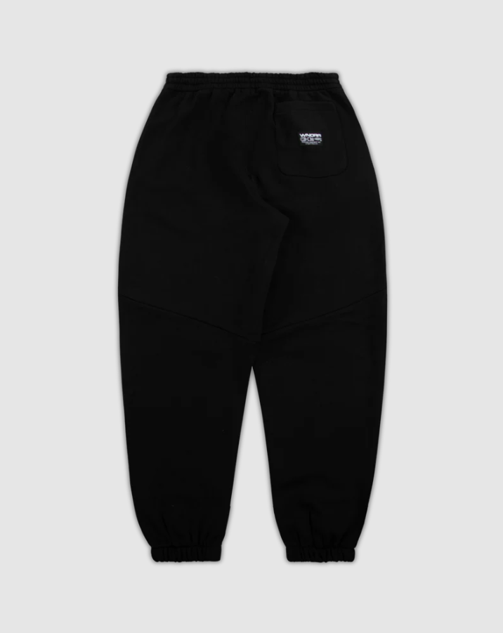 Halo Baggy trackpant in black. Loose fit; straight leg 65% cotton, 35% brushed fleece Black Elasticised waistband with internal drawstring Twin hip pockets Back right pocket Branded details to front & back Elasticated cuffs
