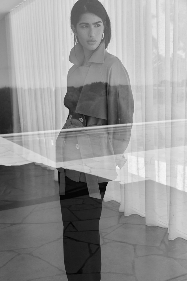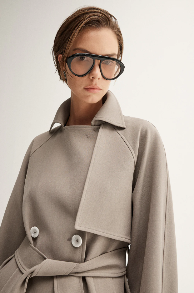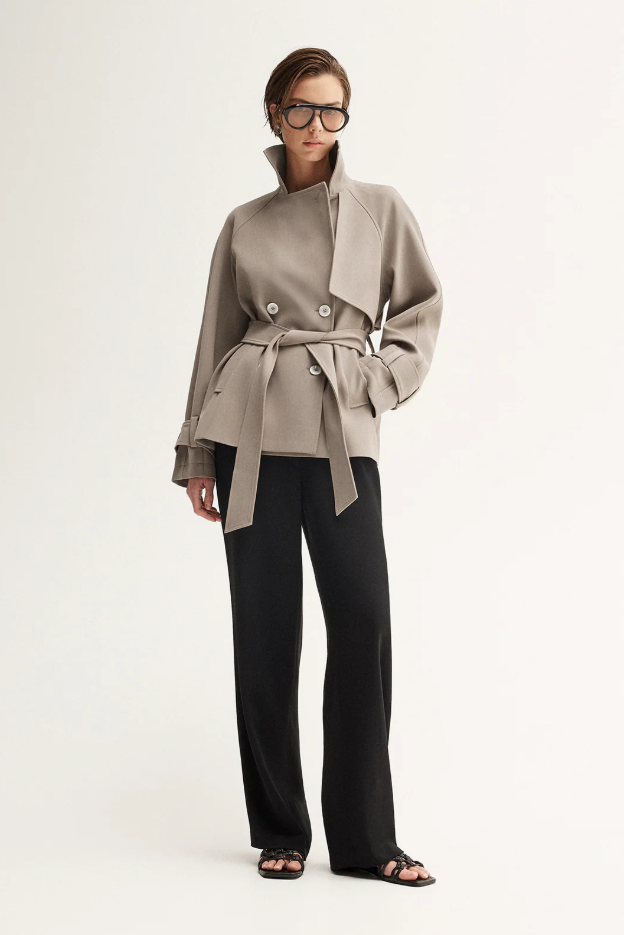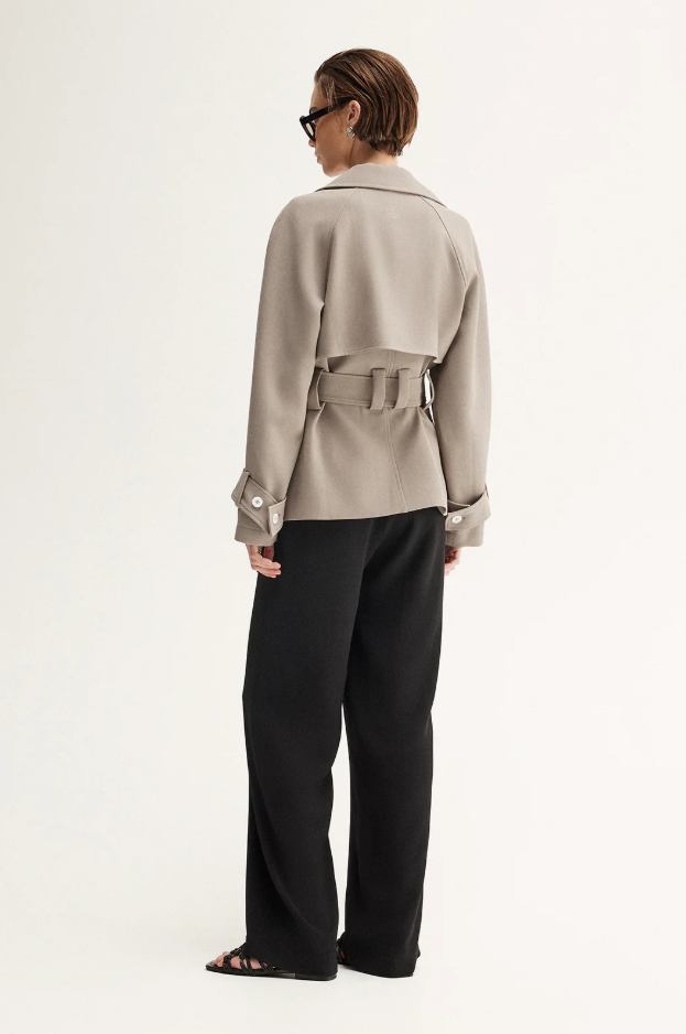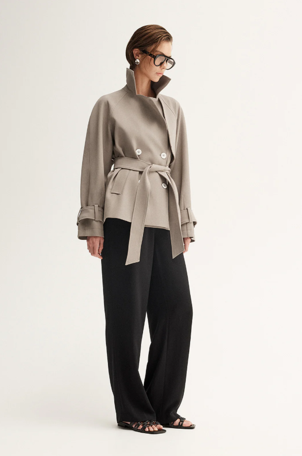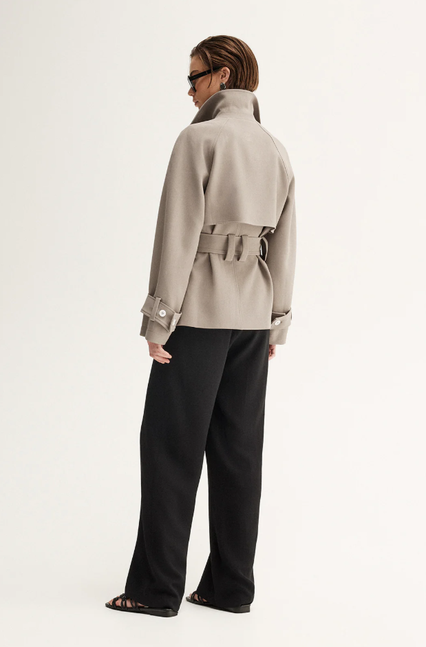 Expertly crafted from a heavyweight textured fabric, the Selena Trench is a new variation to our selection of classic outerwear with a sleek cropped fit. Layer with tailored pants and seasonal knitwear. This coat is thougtfully designed for day-to-night styling.