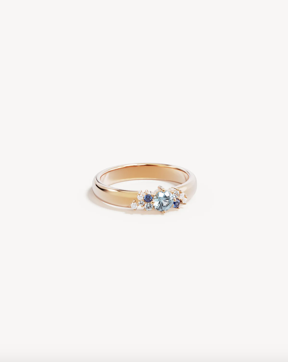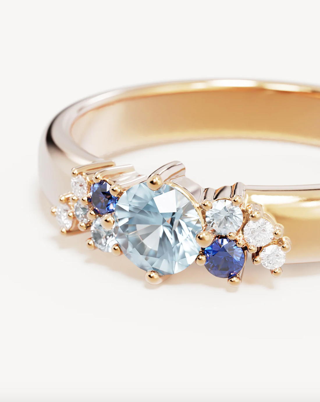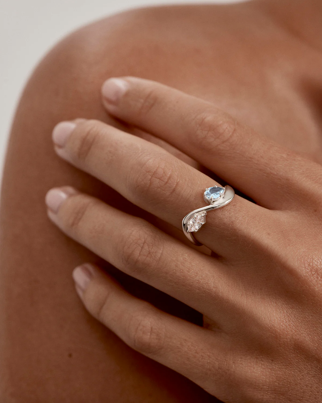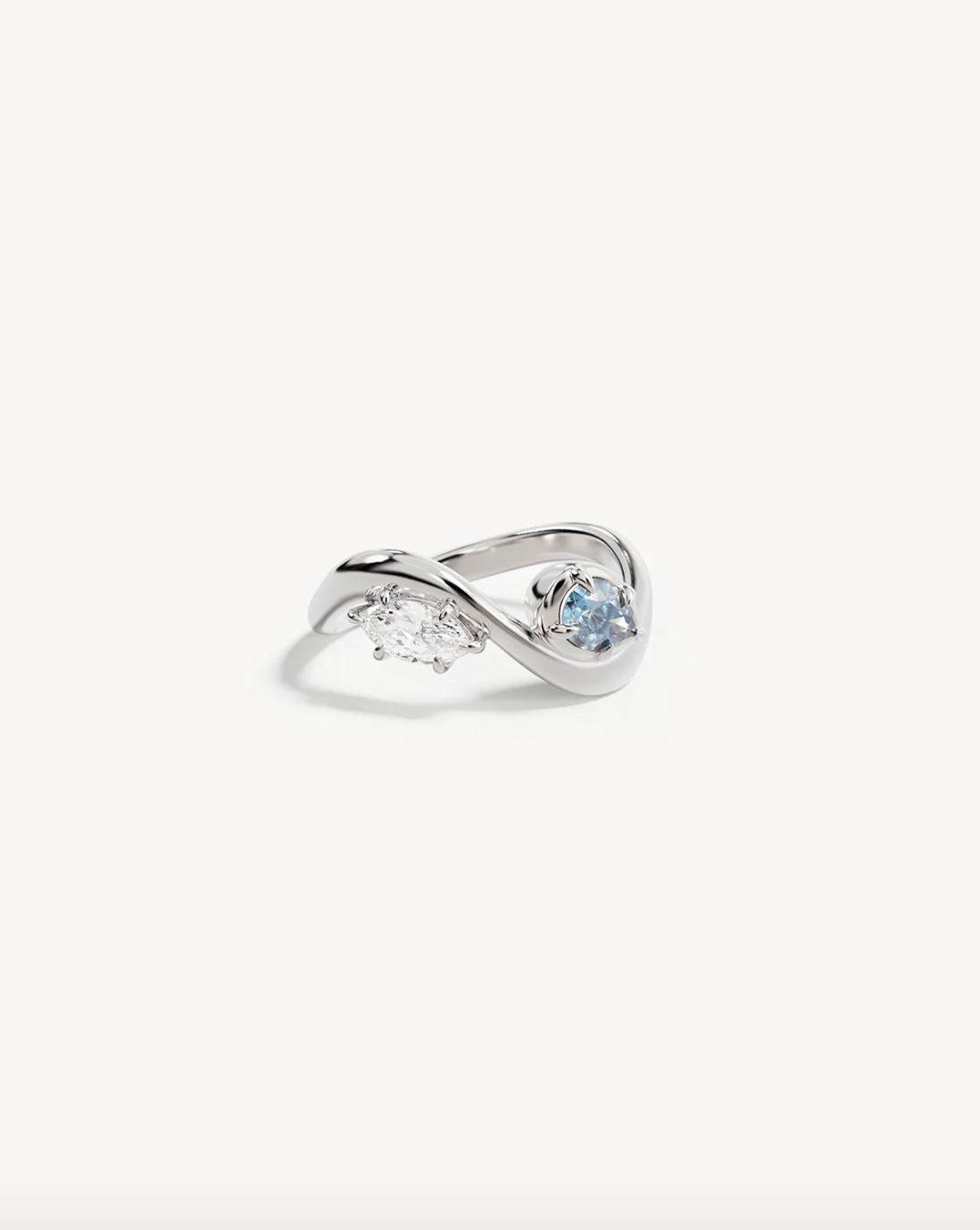 Set with a lab-grown aquamarine and white cubic zirconias.