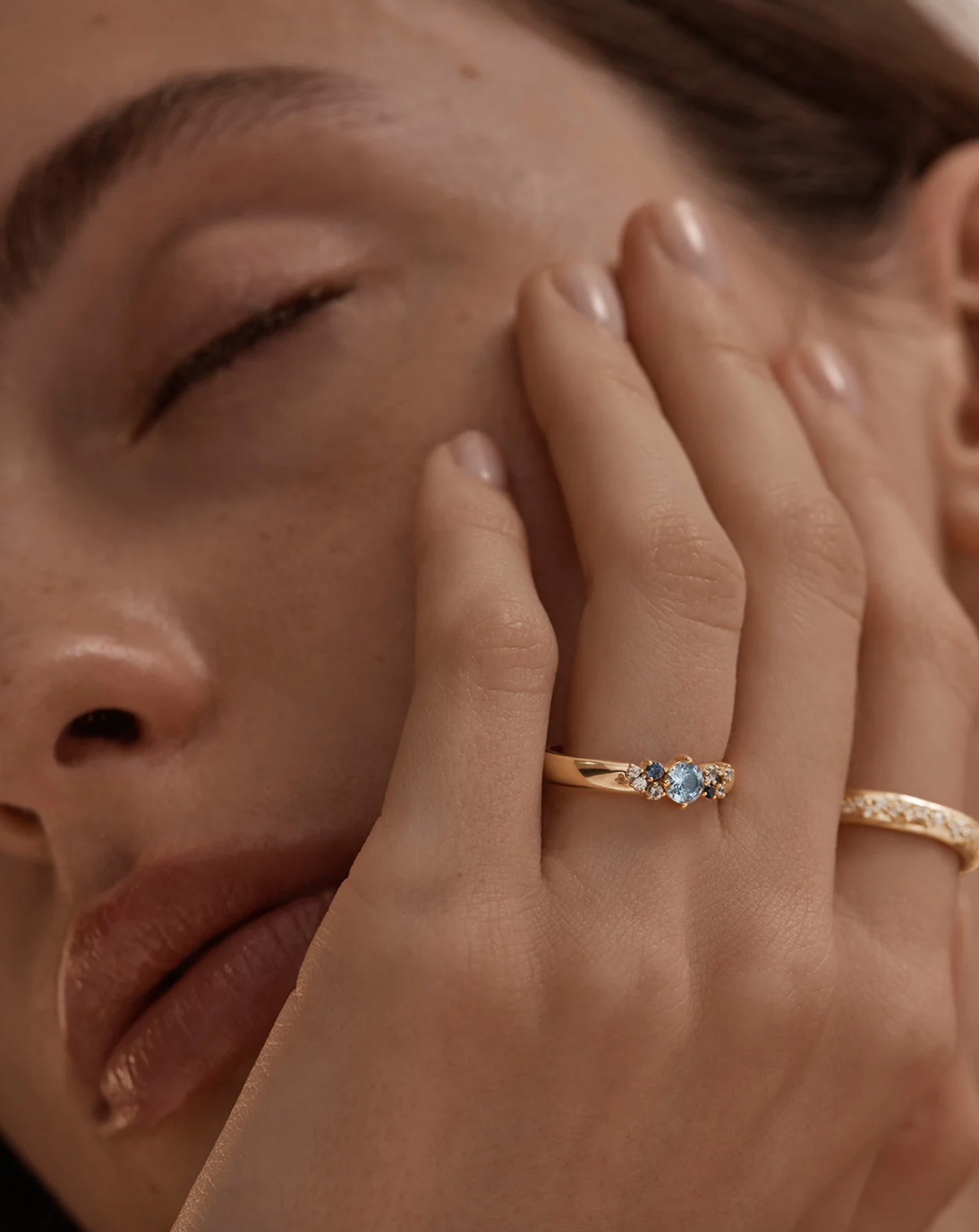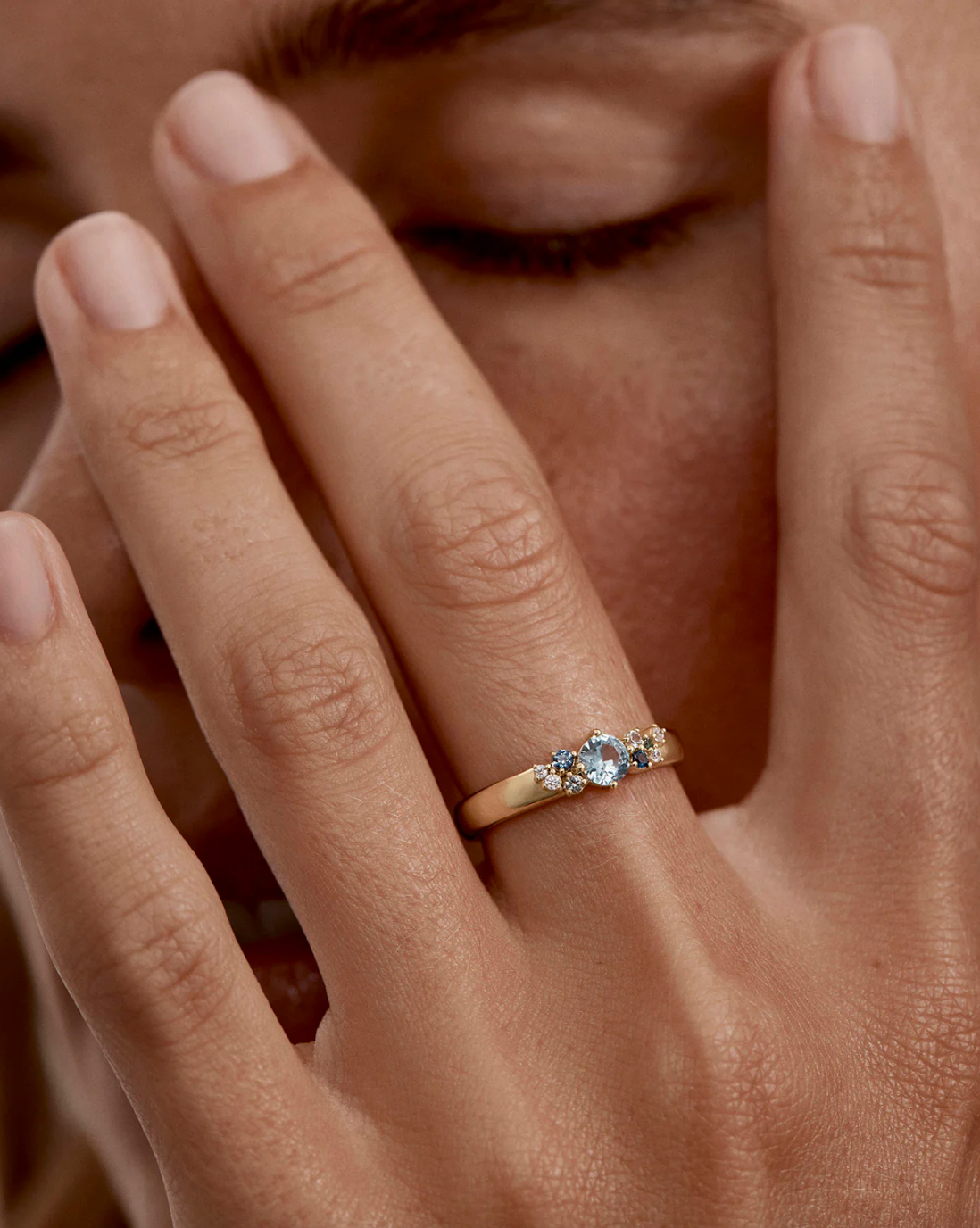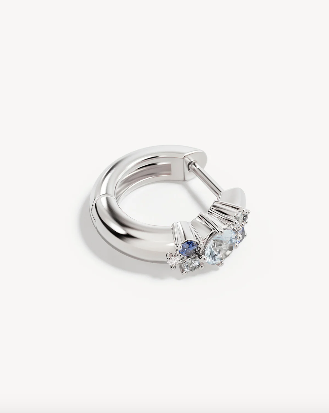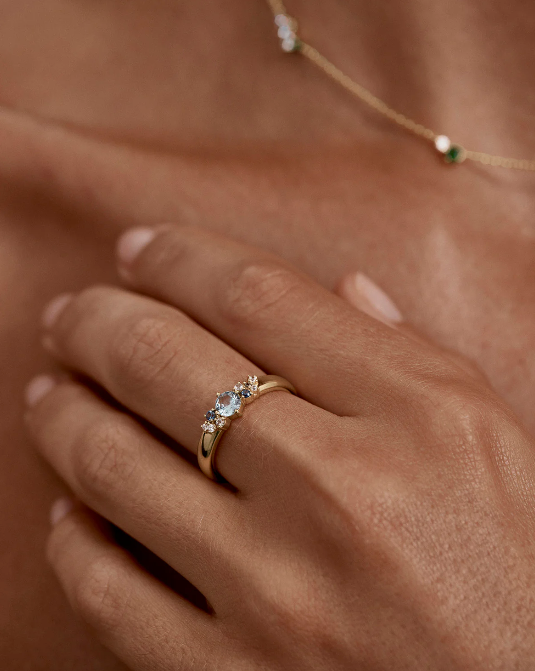 Set with a lab-grown aquamarine and white cubic zirconias.