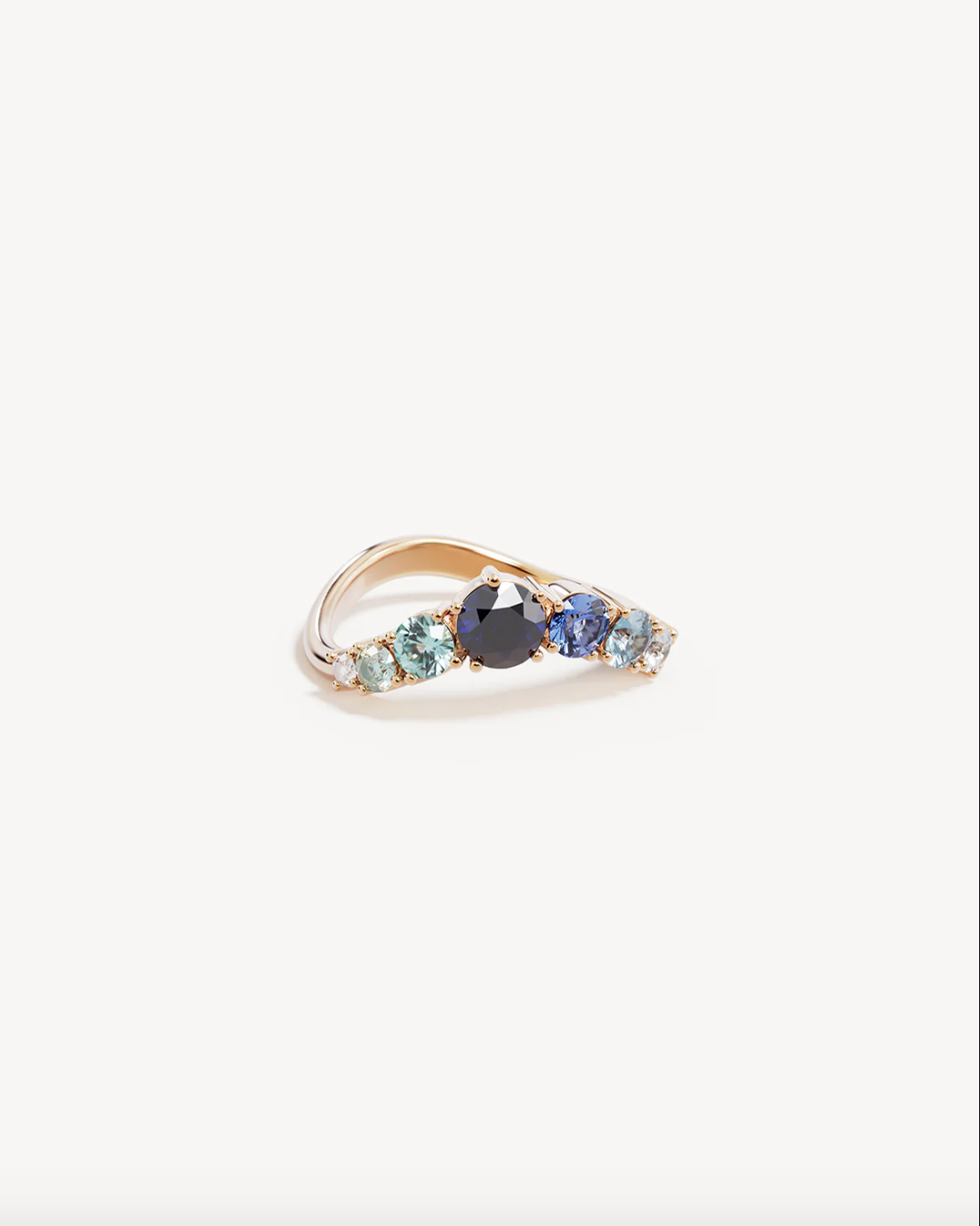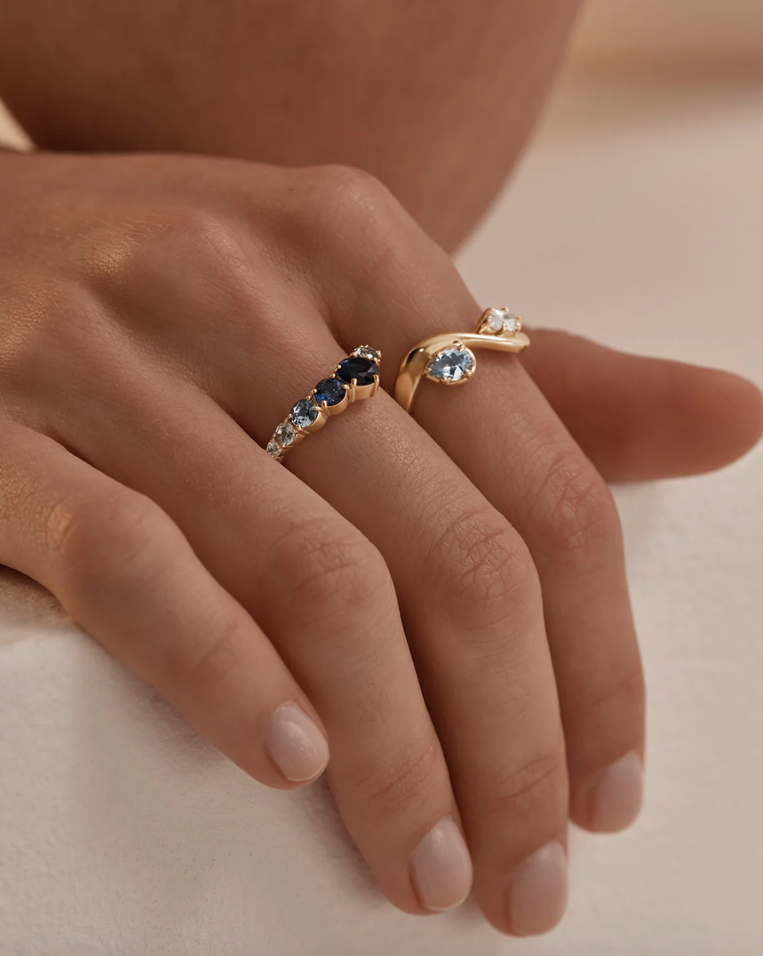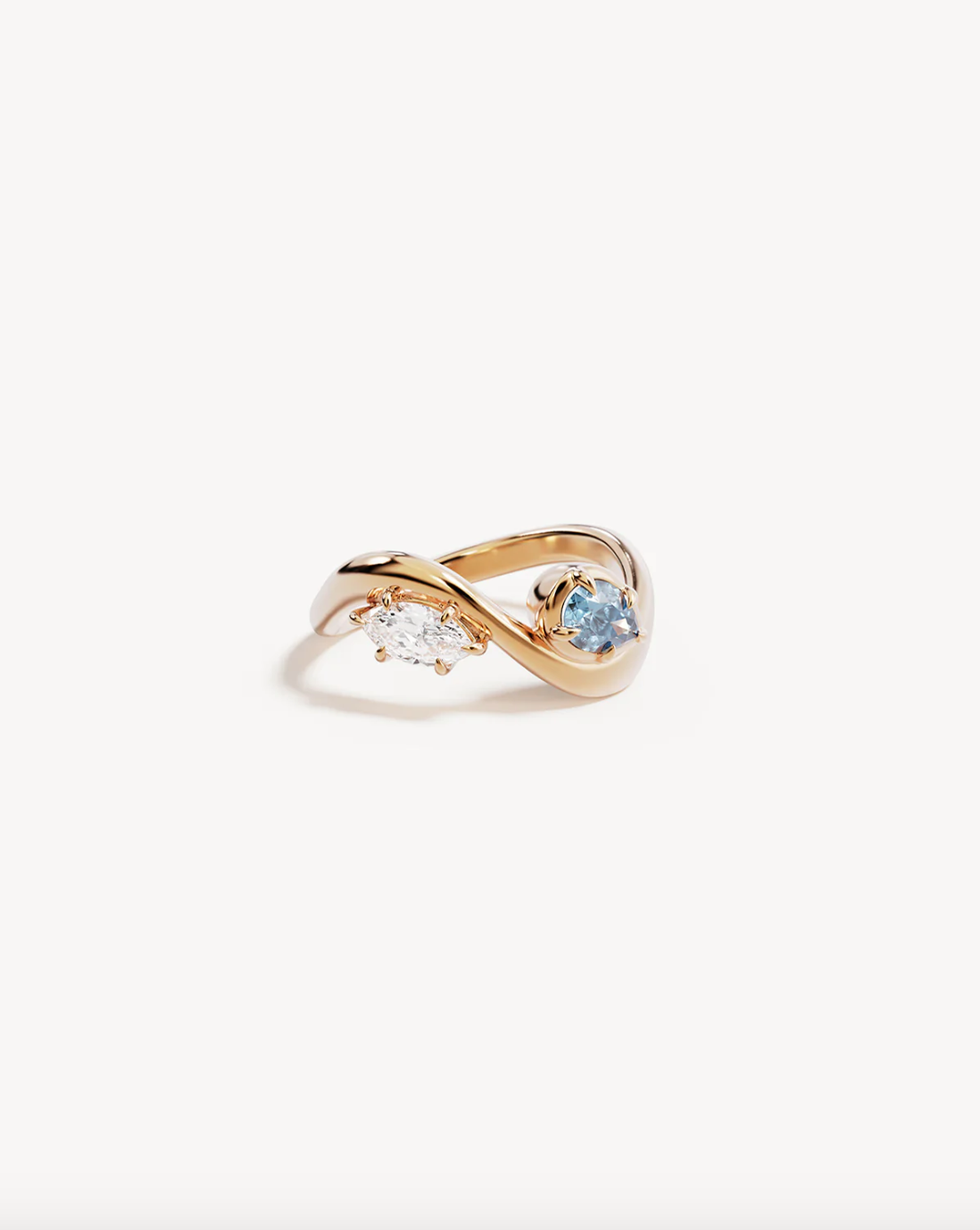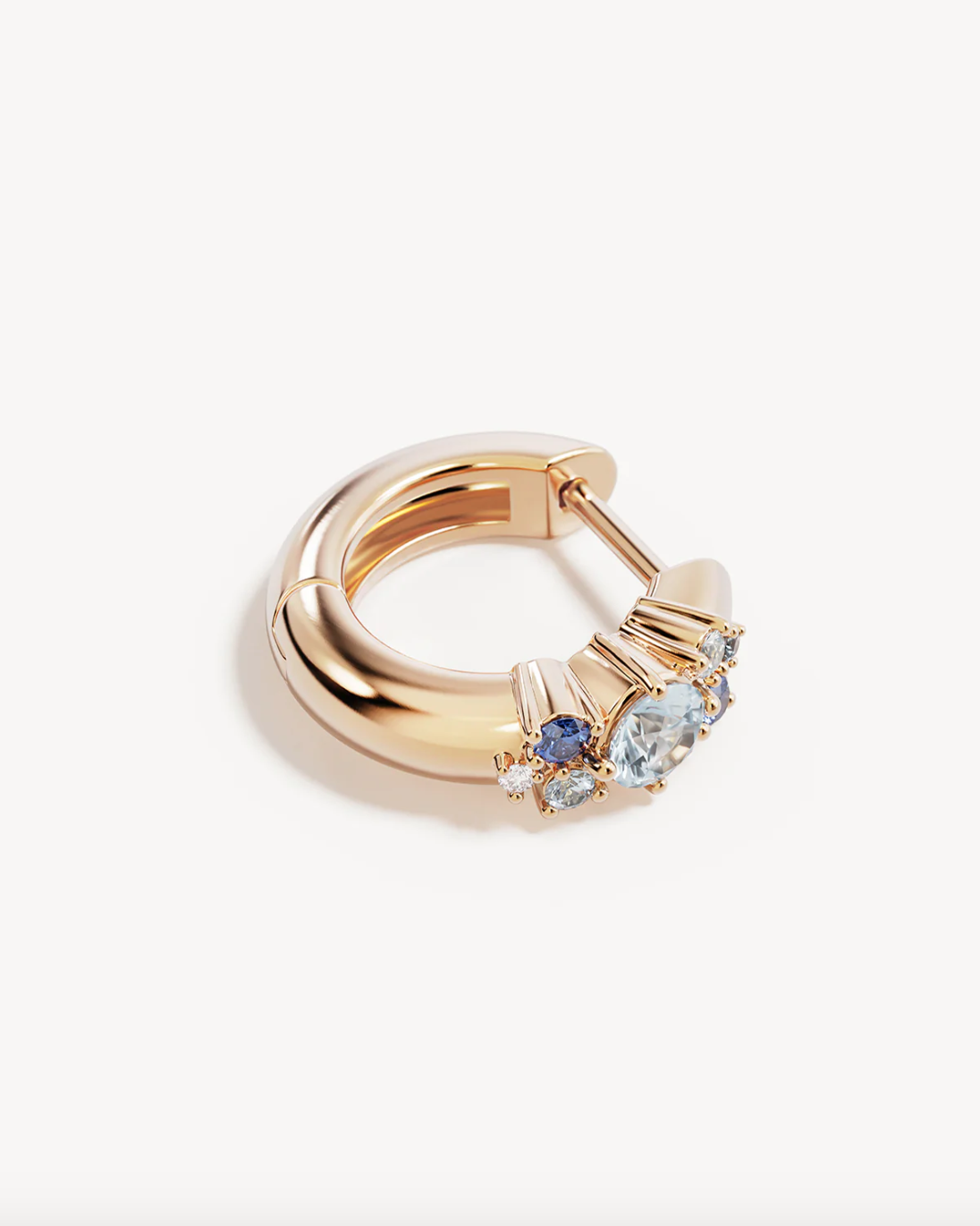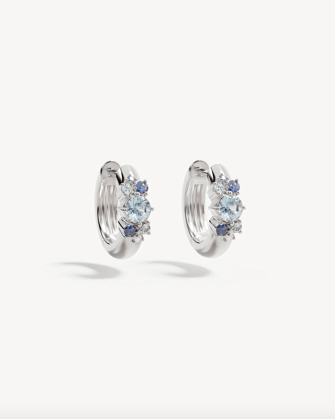 Set with a lab-grown aquamarine and white cubic zirconias.