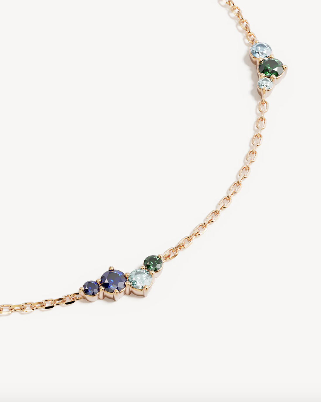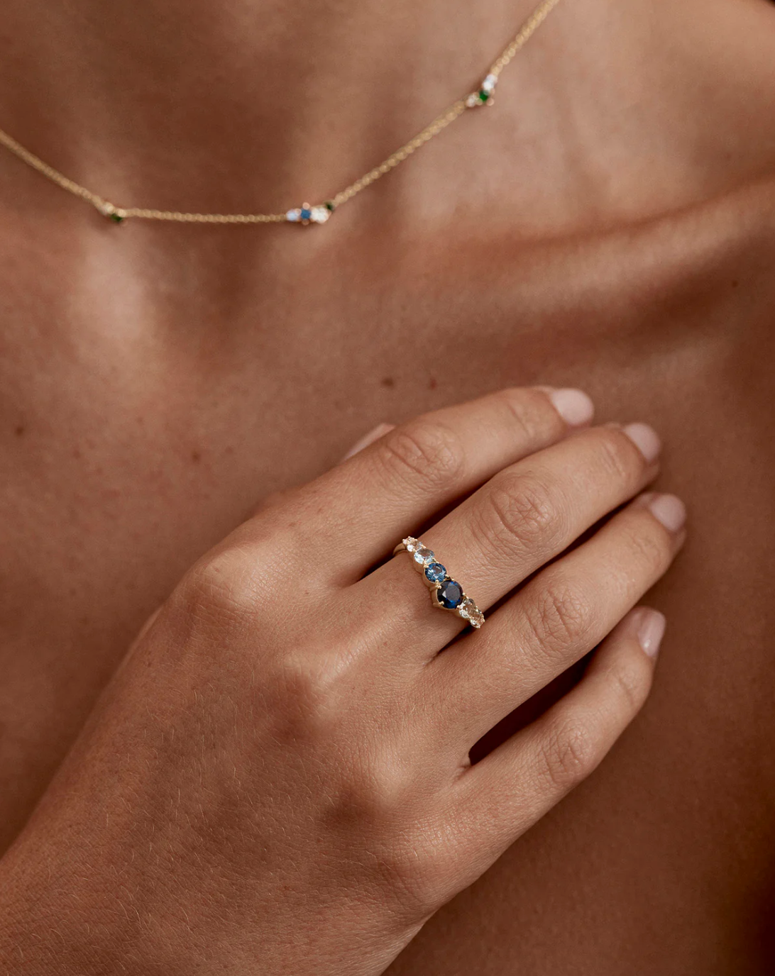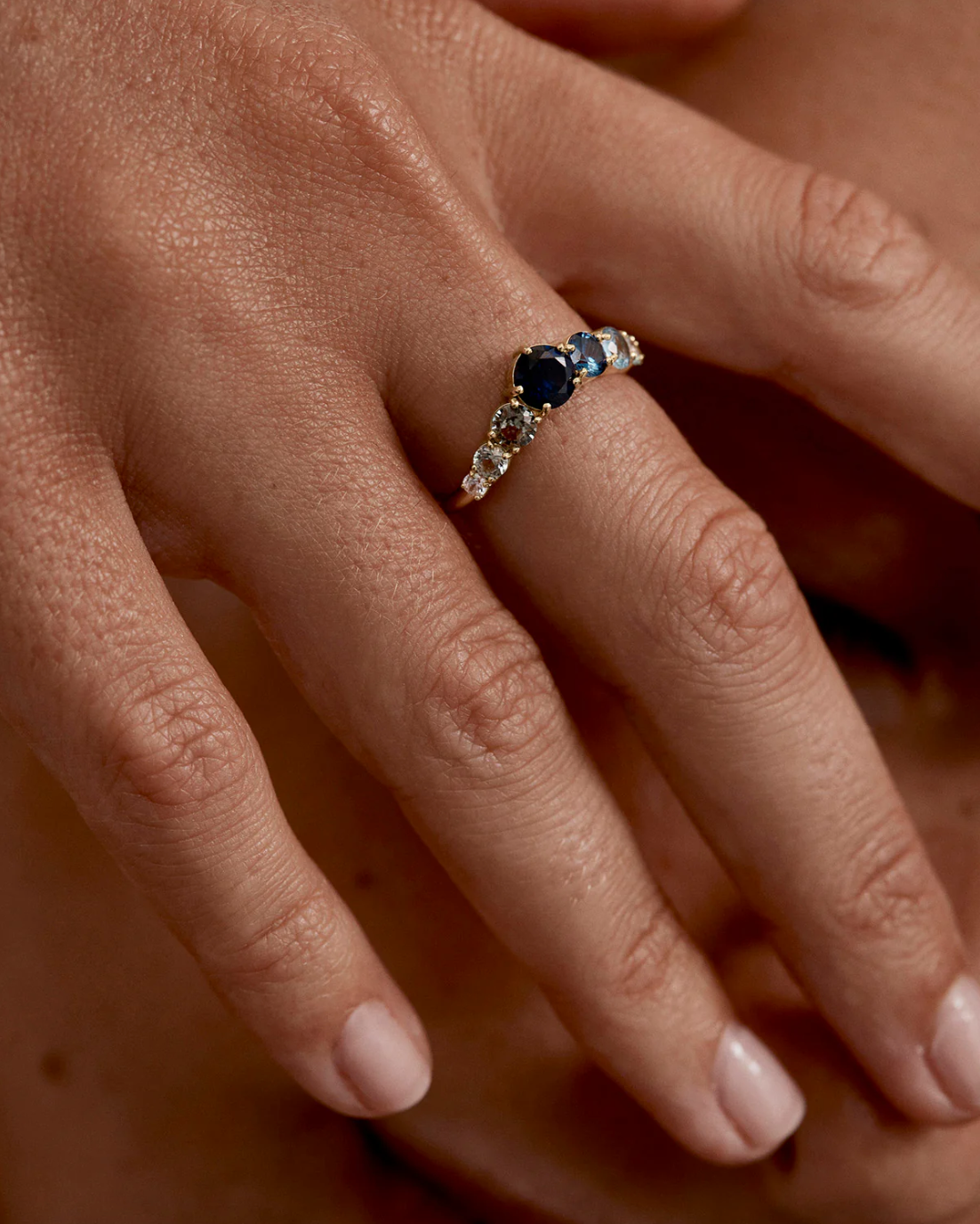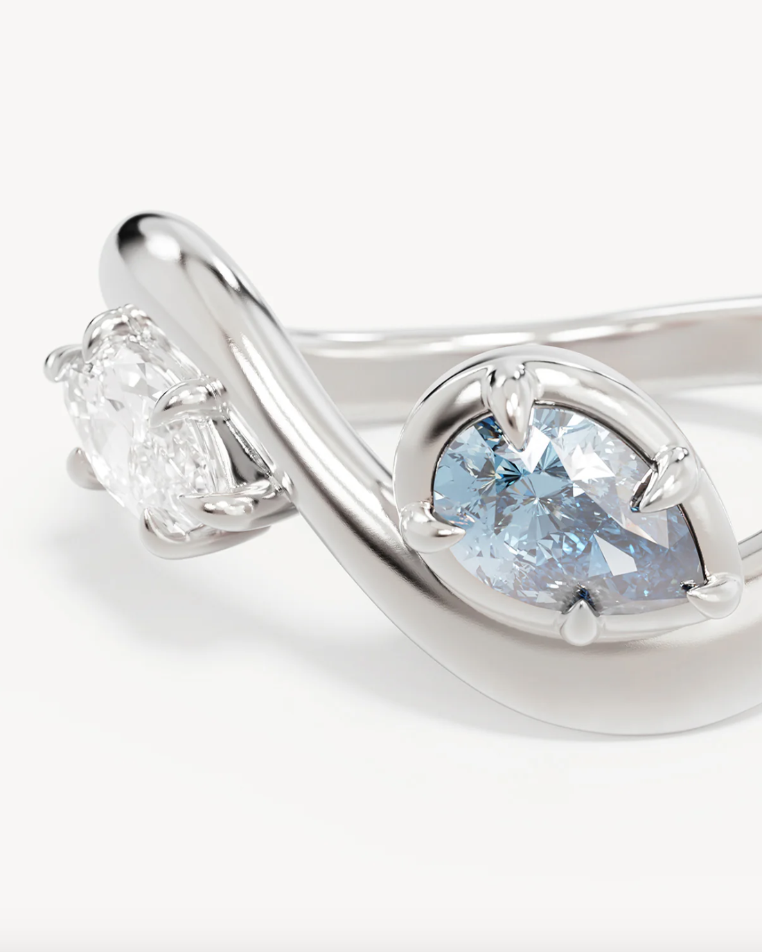 Set with a lab-grown aquamarine and white cubic zirconias.