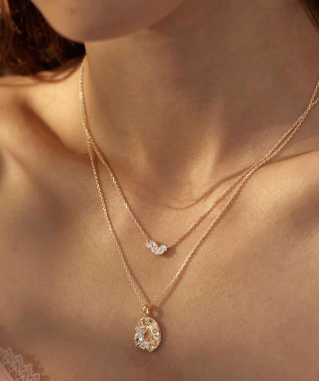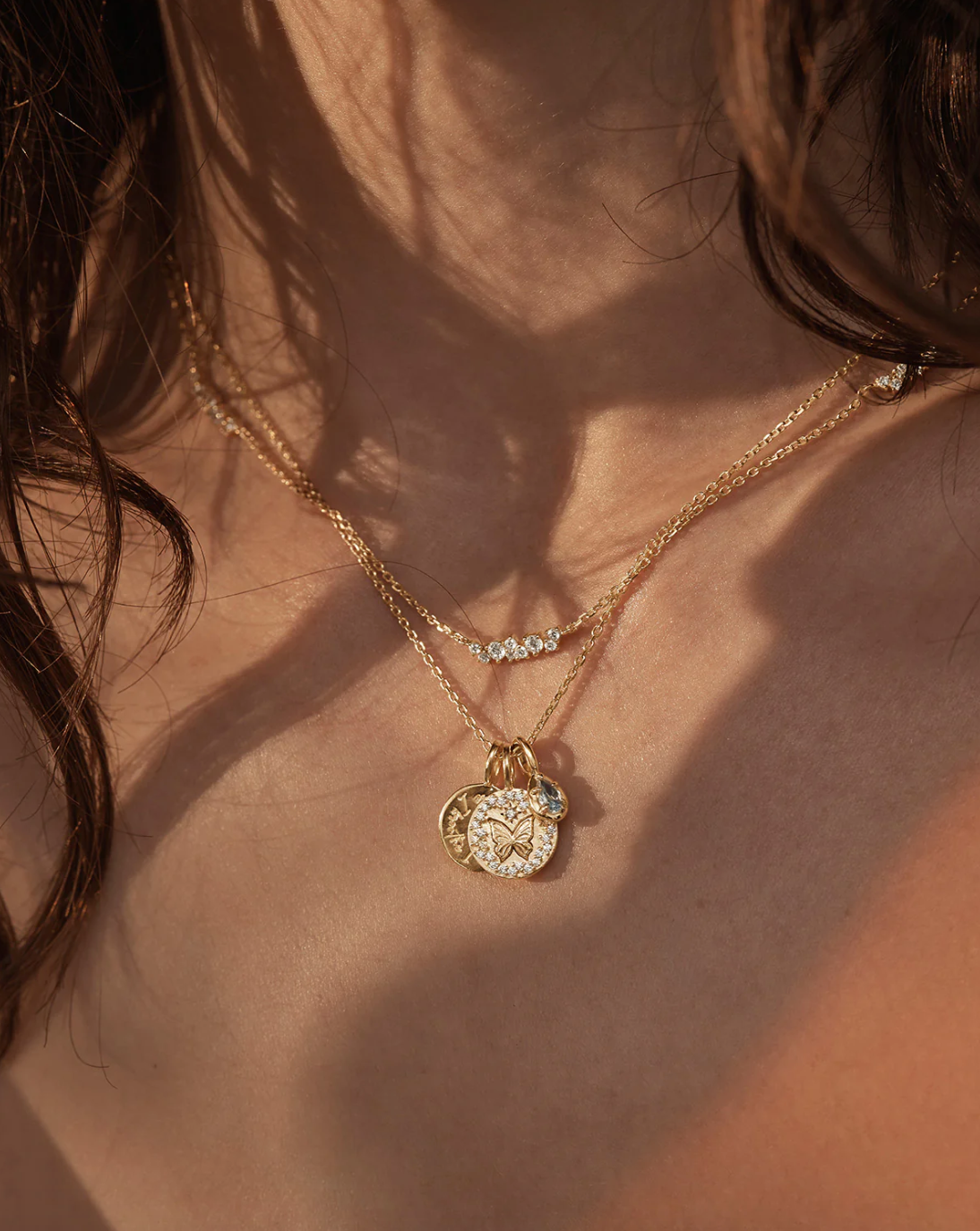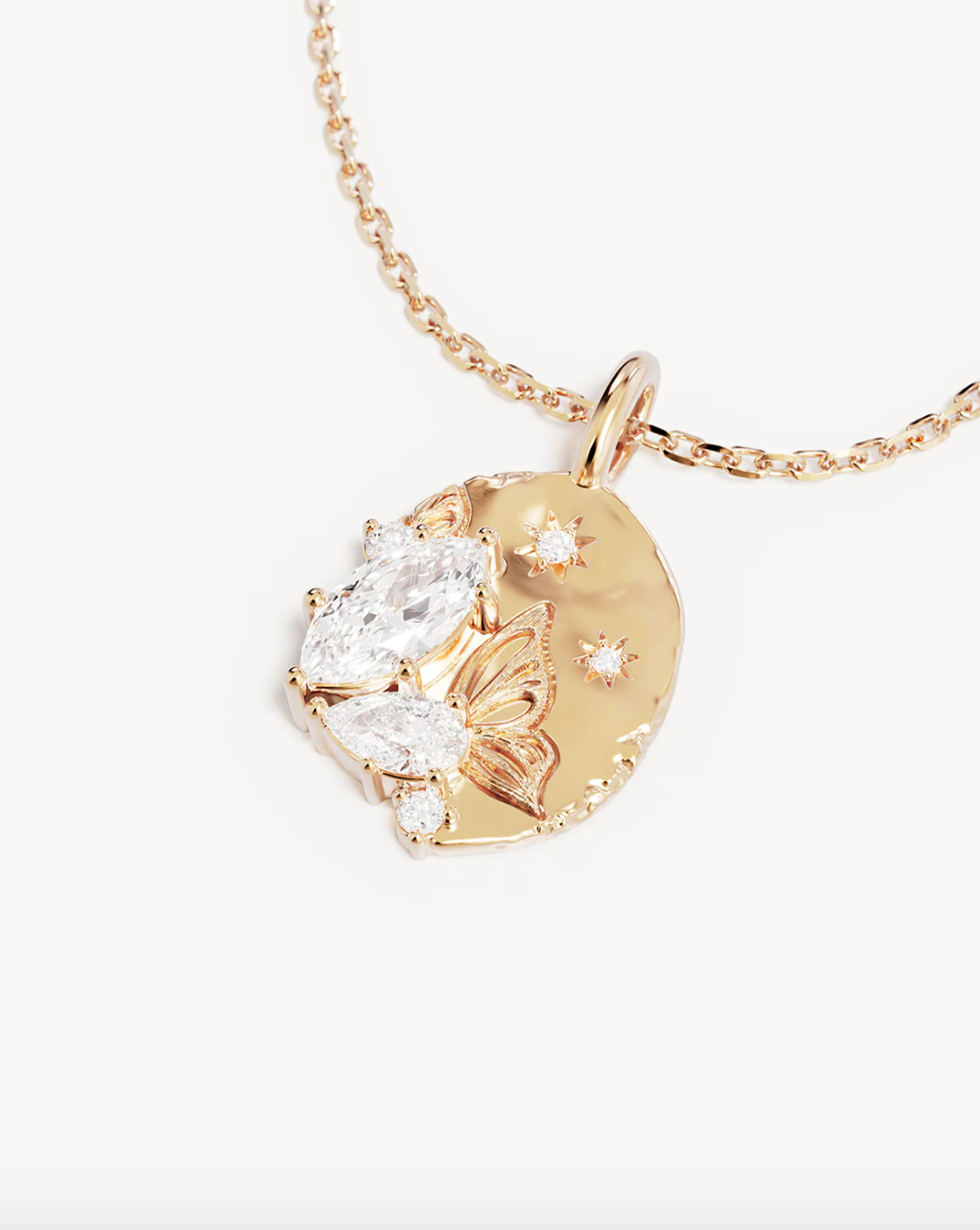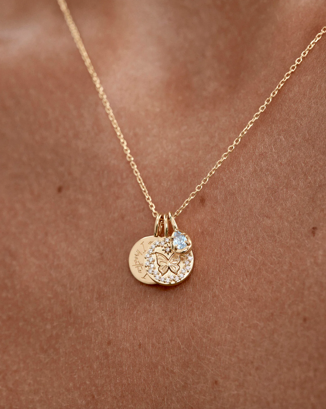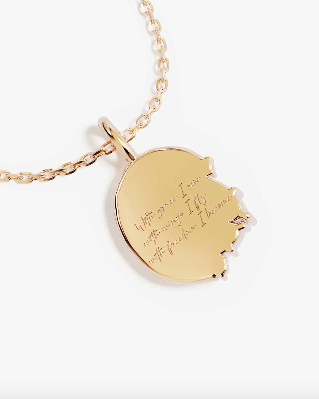 The With Freedom I Become Necklace, is a symbol of new beginnings and the journey of self. Featuring a butterfly in flight set against the night sky, this keepsake reminds us of the power of growth, transformation, and renewal, and to embrace the freedom that comes with letting go.