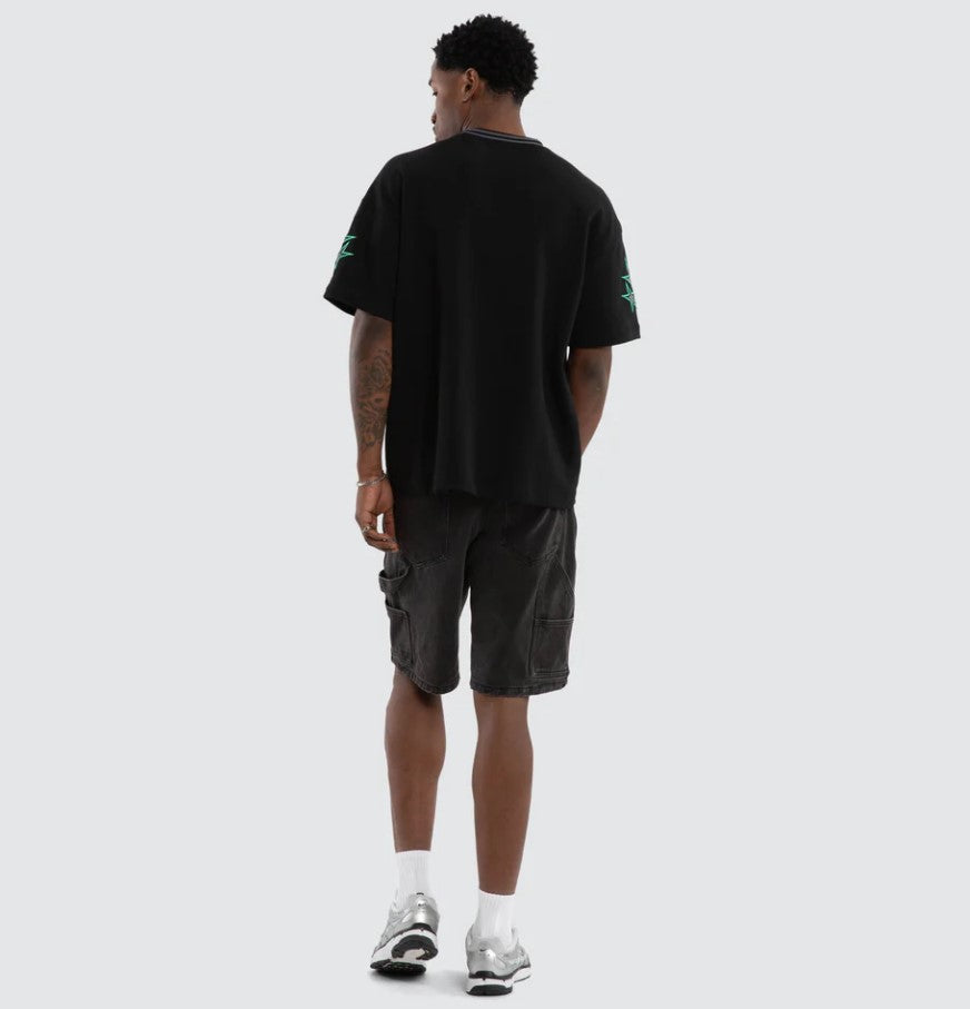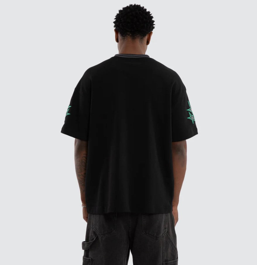 The Retribution Dual Curved Tee in Jet Black features a slim fit, long length and curved hem. Designed from 100% cotton in a recycled blend, finished in a soft wash for added comfort.
