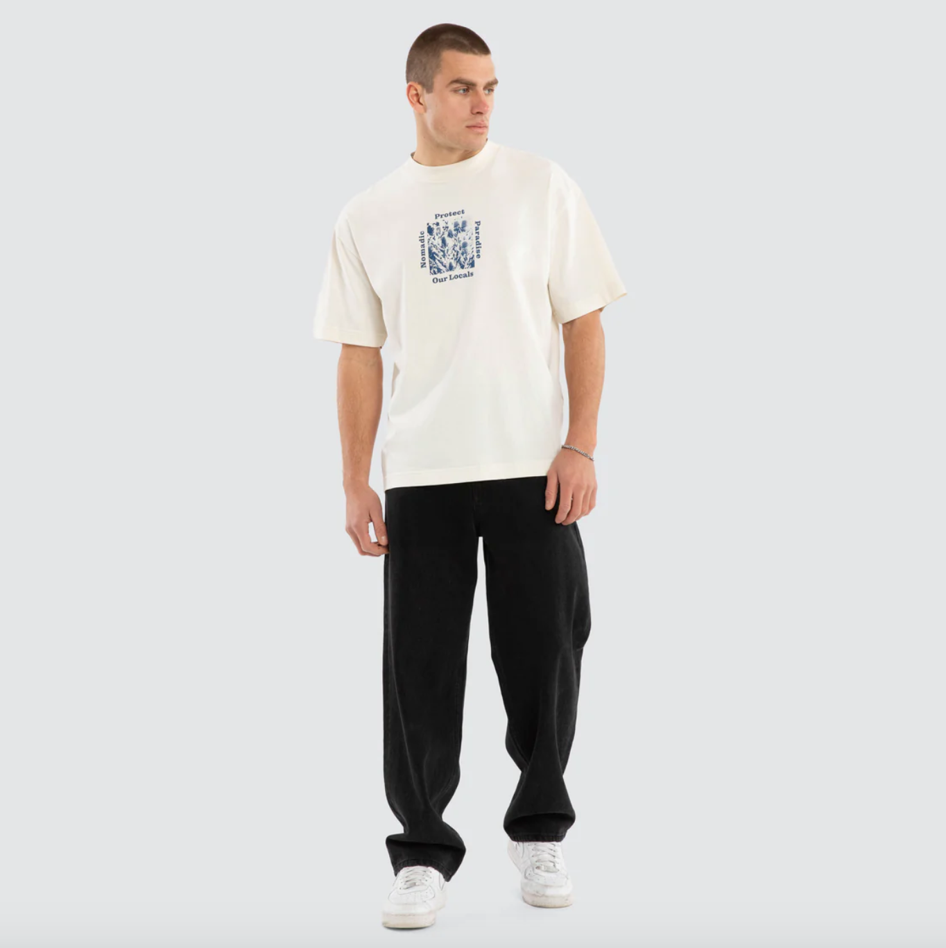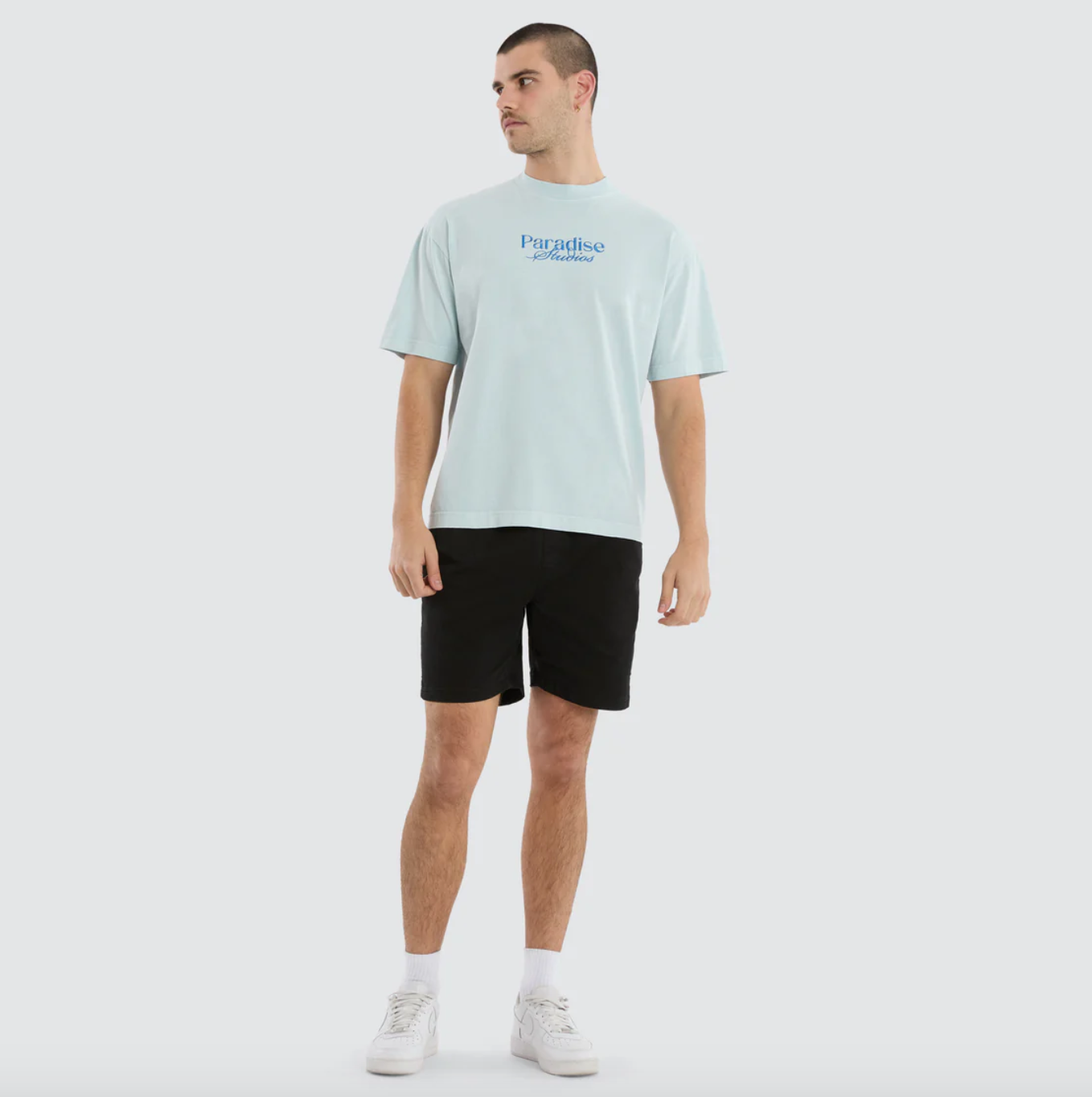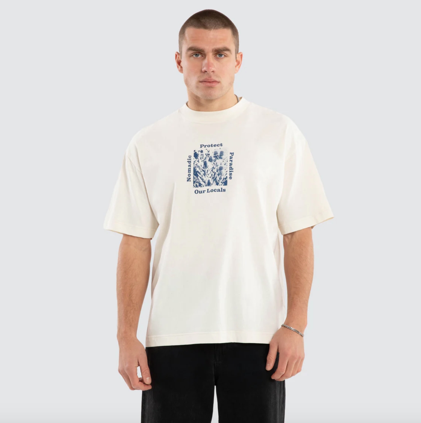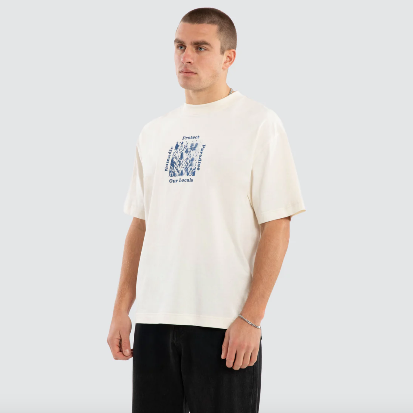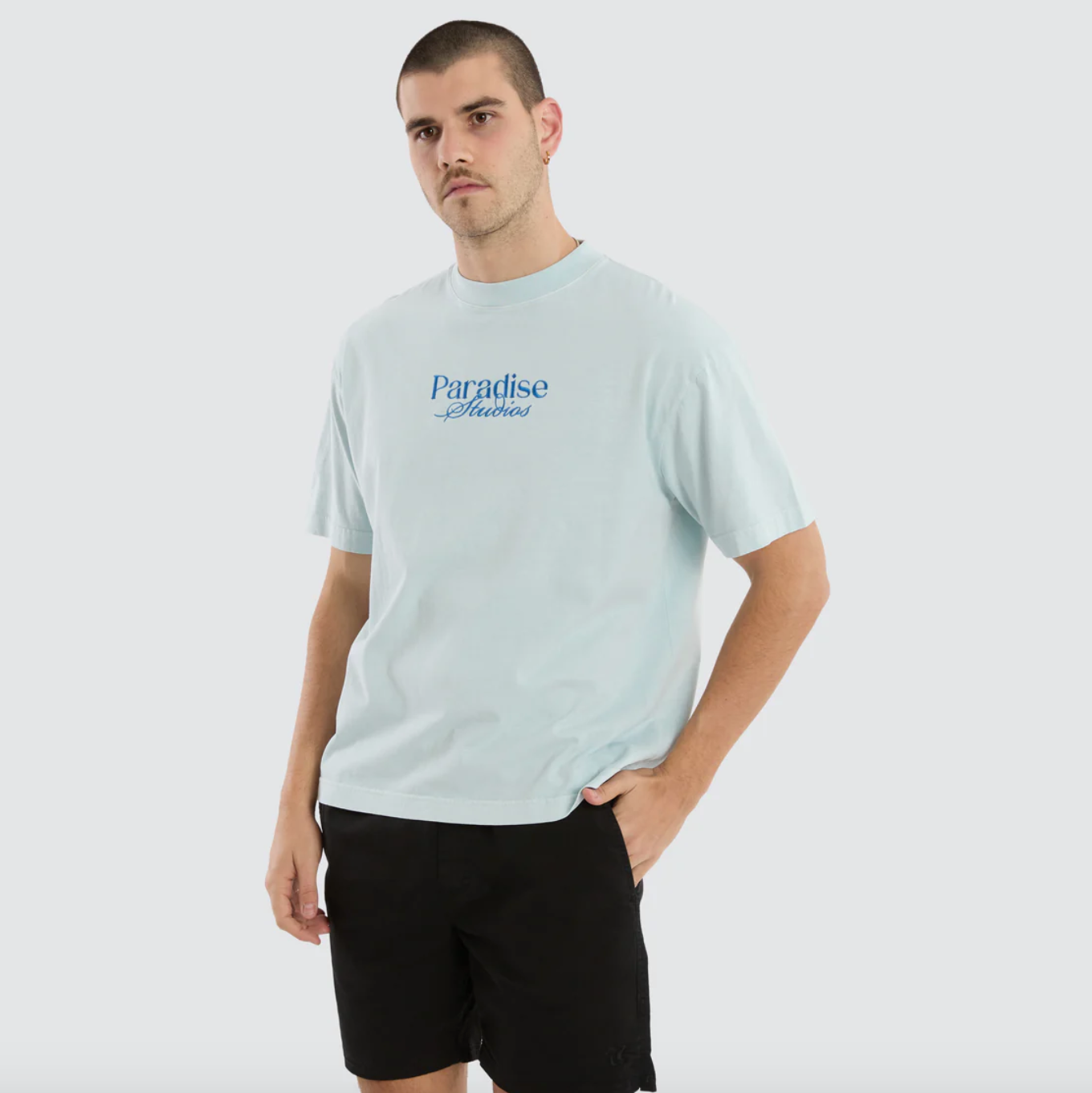The Merch Street Tee in Pigment Baby Blue is a standout piece from Nomadic's collection. With a boxy fit and slightly cropped length, this tee is all about casual street style.