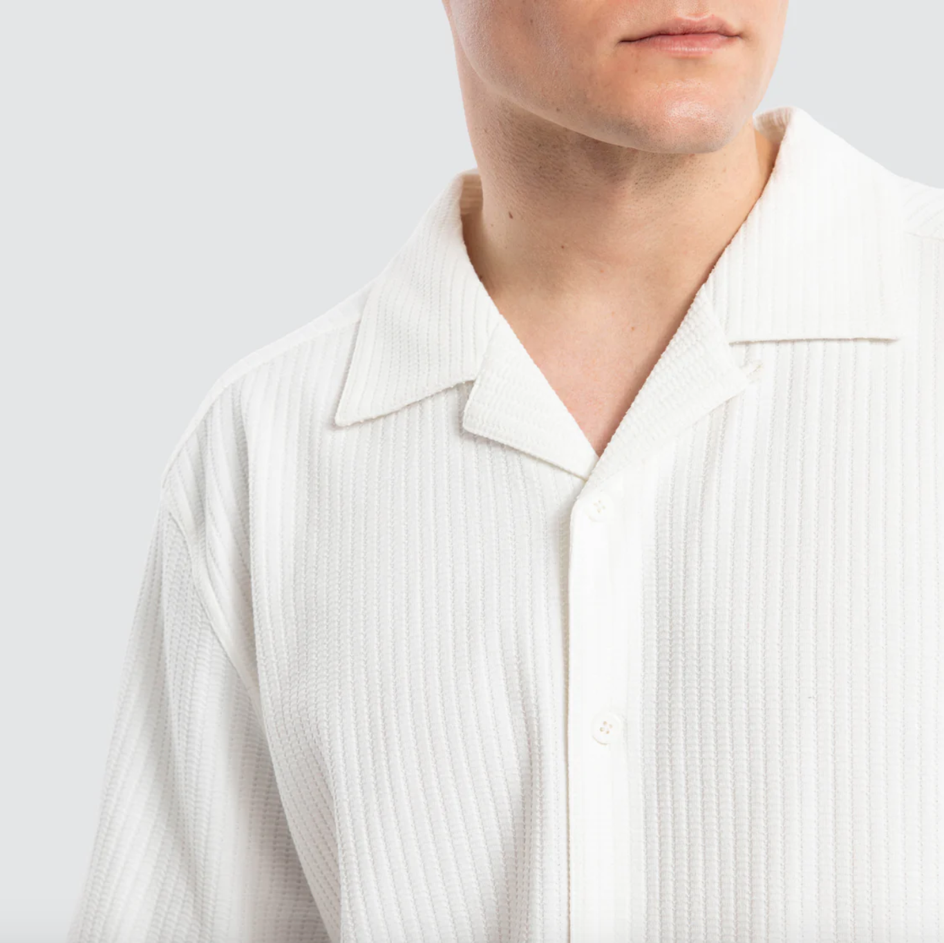 Features a dropped shoulder, relaxed sleeve and high thick neck ribbing.