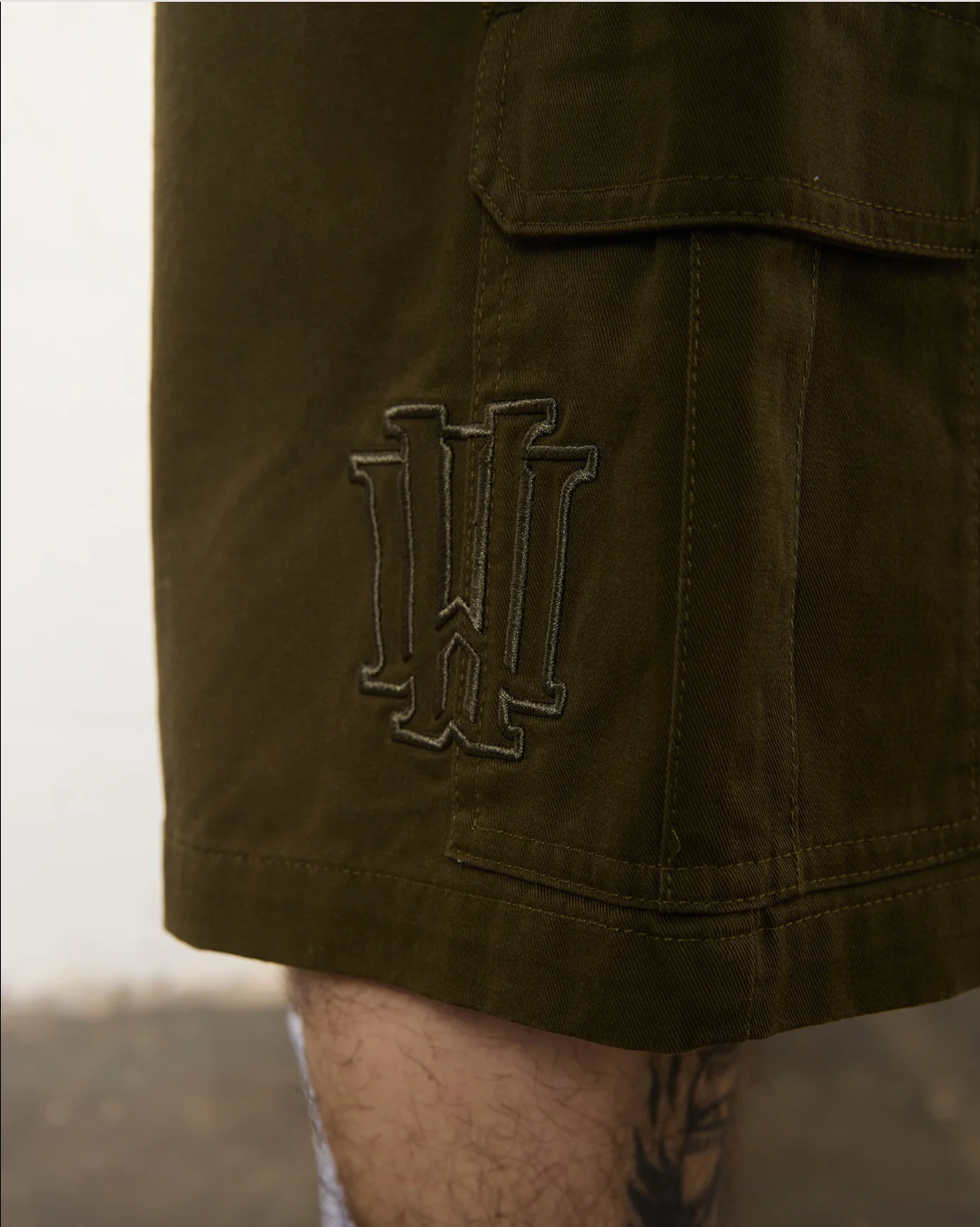 Regular price $109.95 Save $-109.95Revoked Cargo Short in moss green.