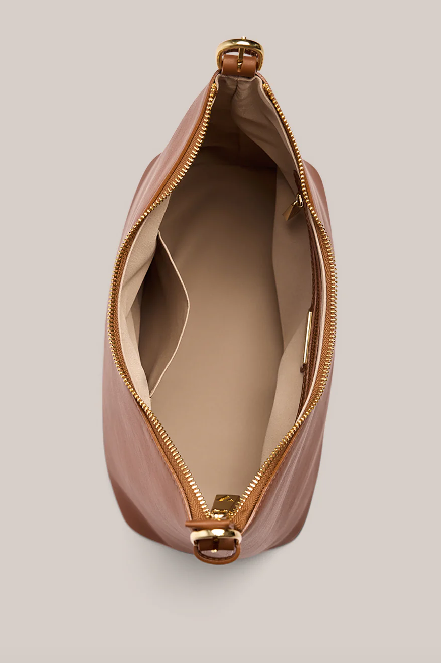 Two interchangeable straps invite multiple ways to wear. Hand-held for a minimalist statement, or draped crossbody for effortless movement. Inside, a single zip pocket offers subtle organisation without interrupting the bag’s clean lines.