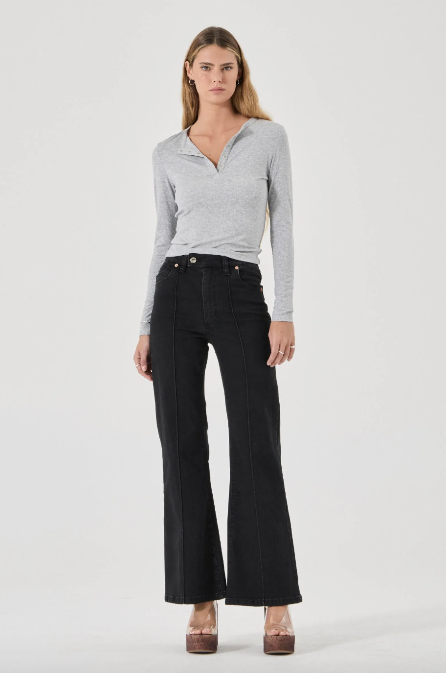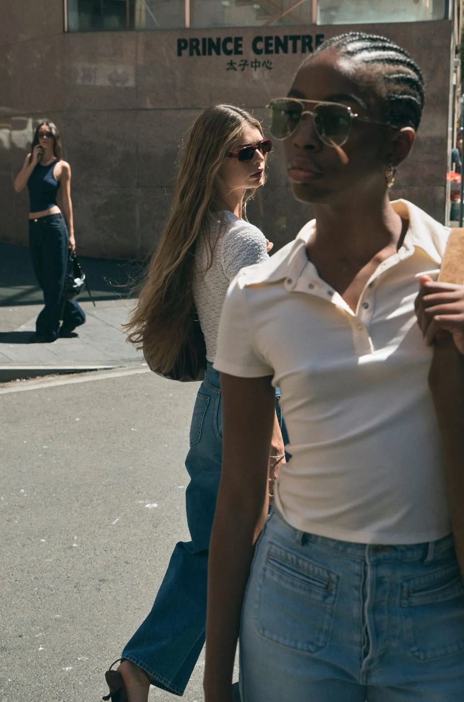 Slightly relaxed through the seat and specially angled and shaped in the back for a truly peachy looking butt