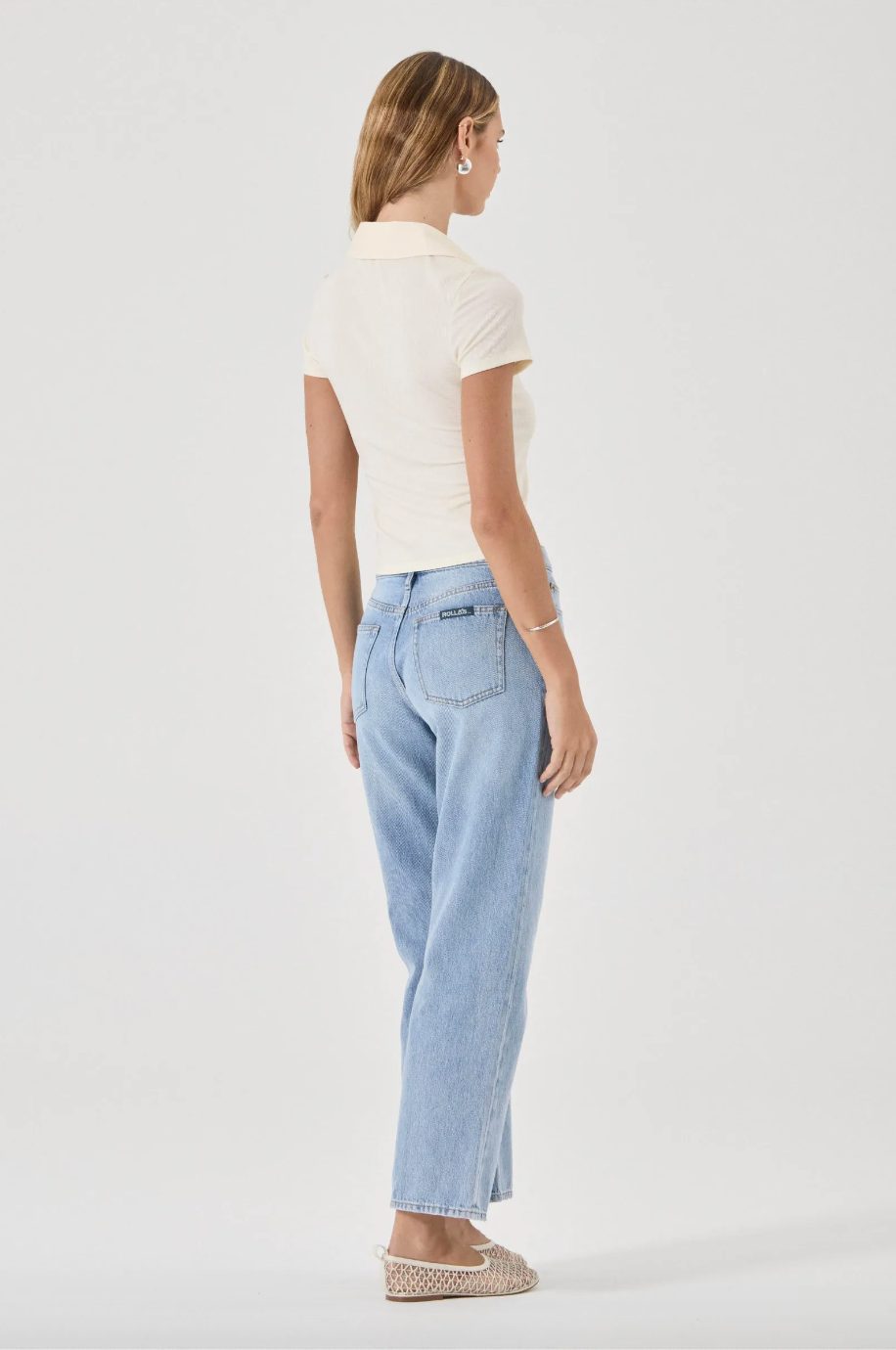 Loulou Straight is a high-rise jean with a slim straight leg, made of a comfort denim.