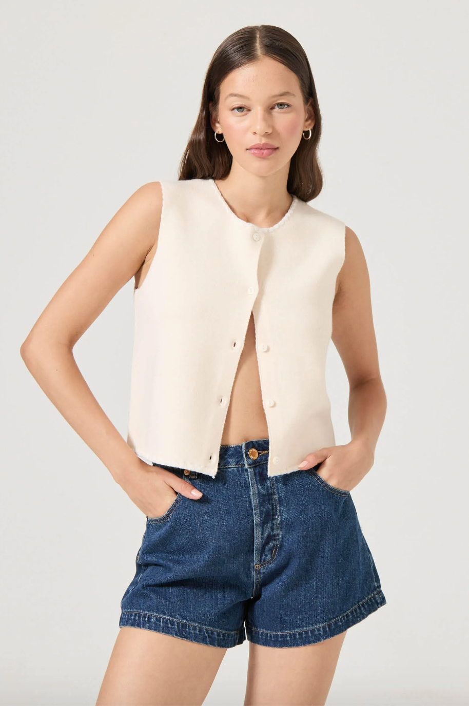 One main beige cotton lined compartment featuring a large zipped pocket for valuables, plus two open pockets.