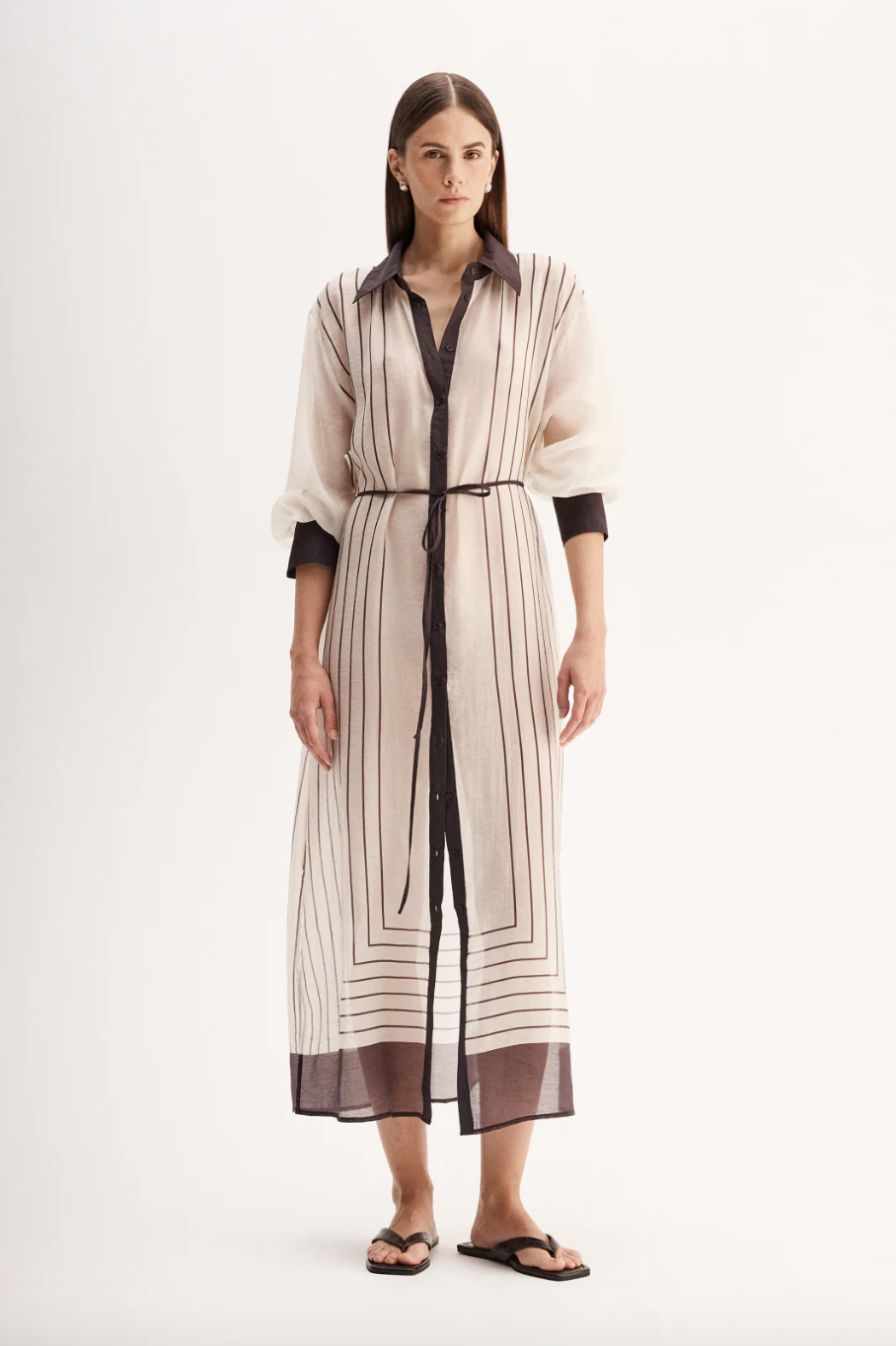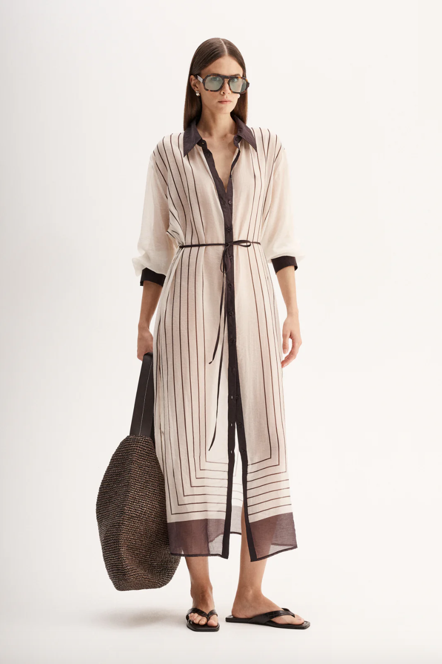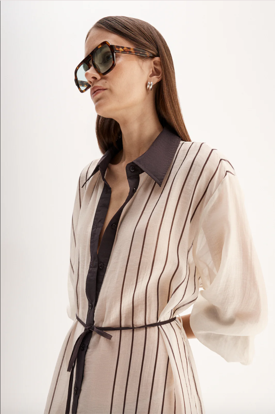 Regular price $299.00 Save $-299.00The Havana Maxi Dress is made of a lightweight semi-sheer fabric with a soft, silky texture ideal for summer. A classic shirt silhouette with button through front and collared neck, this dress includes a removable slip and string belt. Style open over a wide leg pant for a unique work to weekend look.