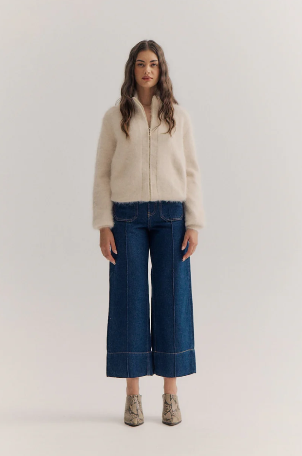 The Hugh Jean channels a true ’90s sensibility through a relaxed, low-slung fit and a wide-leg silhouette designed to drape effortlessly over the body. Crafted from midweight, non-stretch regenerative cotton denim, this style offers an authentic, structured feel that softens with wear. This grey wash is finished with vintage-inspired grinding, hand sanding, and subtle highs and lows throughout, giving each pair the look of a well-worn favorite. Finished with a raw-edge hem and extended inseam, the Hugh Jean is made to be styled long and worn low for an undone, timeless look.