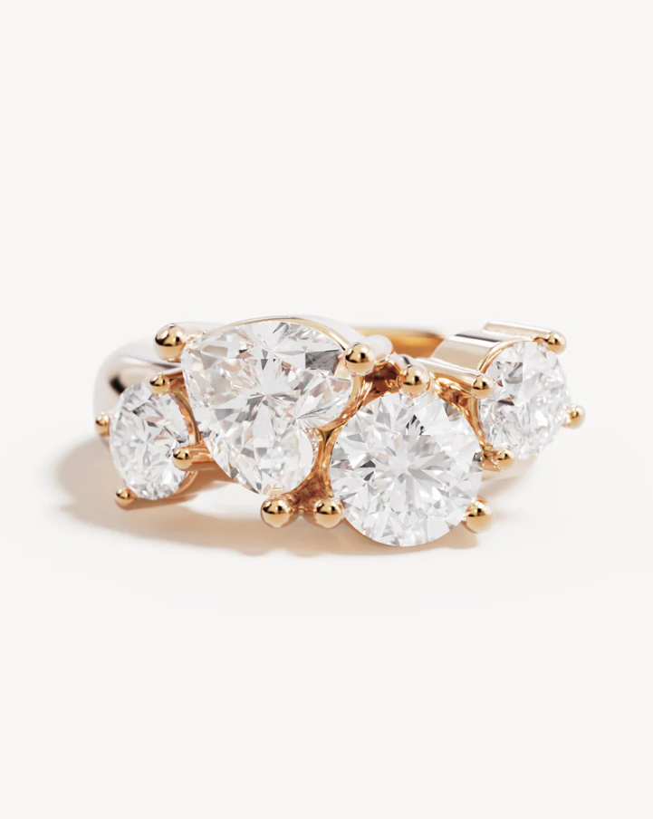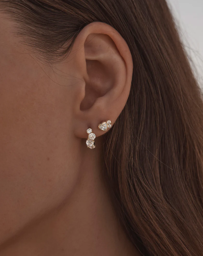 Features heart and round cut cubic zirconias in a claw setting.