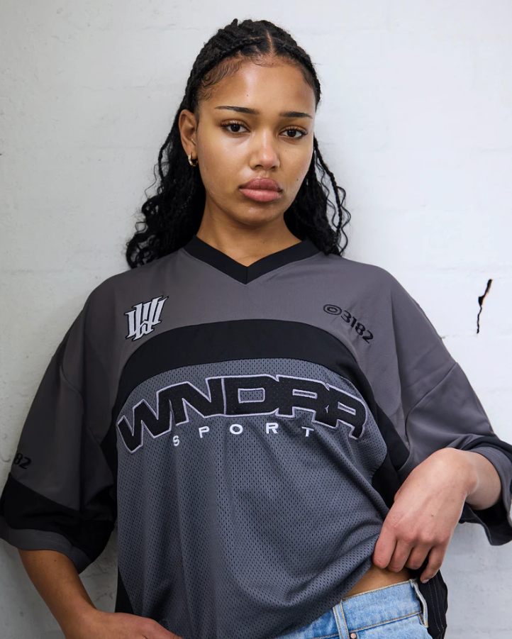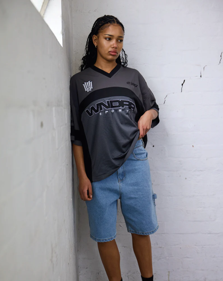 Stadium quarterback jersey in iron/black.